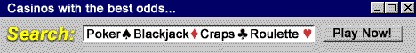 Online CasinoGamble in the top casinos, you can gamble on line now!!!! Get the top online casino games to play whenever you like for fun or for real money. Plus check out the internet casino bonuses and other free casino money. Play poker, roulette, black jack, slos and more games ! Be sure to check out all these great casinos ! Virtual Casinos Play the top Casino on net games and have fun gambling on line ! internet casinos allow you to open a on line gambling account quick and easy. You just sign up and download the online casino and then you can start playing as often as you like. Choose whether you want to play online poker, baccarat, progressive slots or some other casino game and place your bet. These are the most trusted online casinos that we play in on a regular basis ! All have 1800 supports and excellent service!