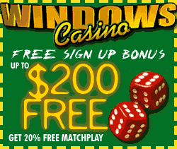 Windows Casino deposits $20 OR 20% FREE into your player account once you start playing for money. You can get $20 FREE easily with a $100 deposit. The maximum bonus amount is $200. Windows Casino is the first online casino that gives you airline miles on American Airlines, America West or Delta Airlines. Every wednesday we give away $3000 to 3 lucky players who deposit money. Be the 15th, 50th or 100th depositor that day and you'll win $1000 in match play bonus. On Wednesdays play $1 Jacks Or Better video poker with a maximum bet. When you hit a Royal Flush we will give you a 20% additional BONUS. On top of $4000, you'll also get an $800 FREE BONUS. Wednesday bonuses are not automatic. They must be requested from customer support by the following Thursday 12:00 noon.